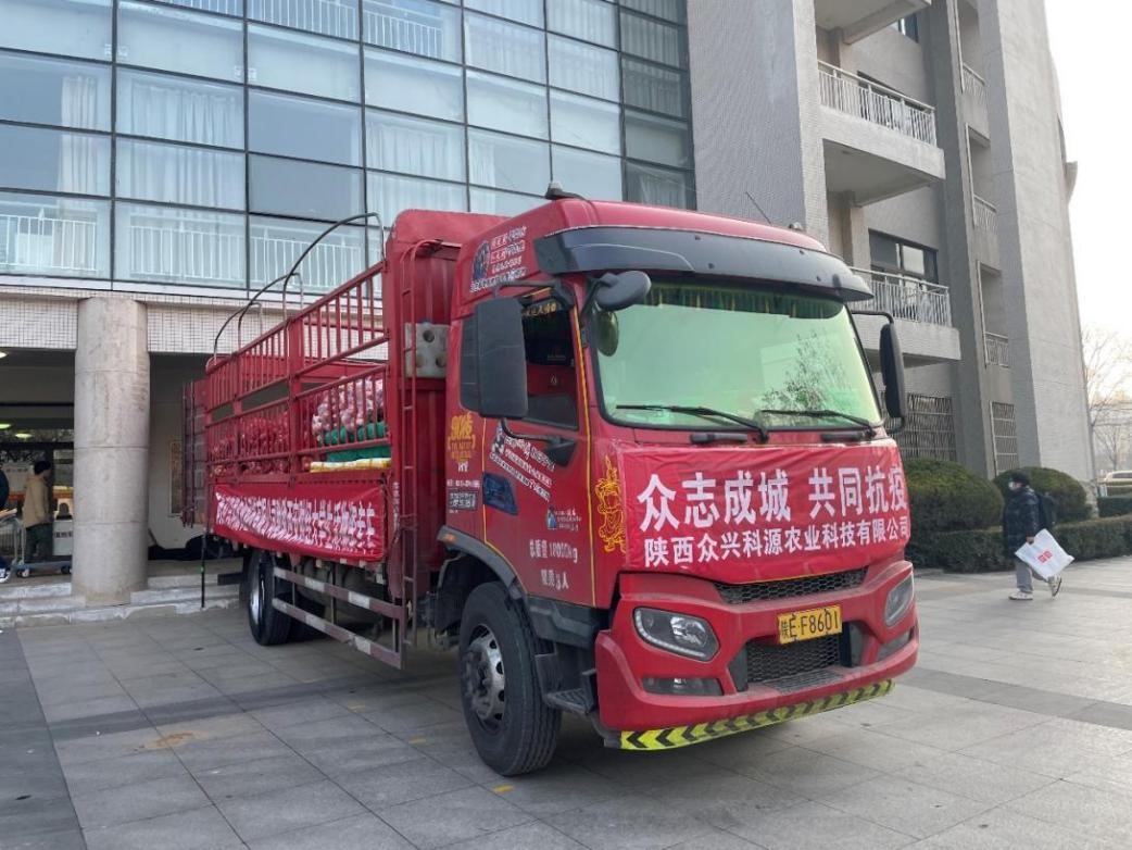 土豆6000斤、红洋葱5000斤、西葫芦5000斤、广茄5000斤、毛笋3000斤、菜花5000斤、尖椒3000斤、芹菜4000斤、杏鲍菇2000斤、生姜600斤、大蒜600斤、花白2000斤、西兰花3000斤、黄瓜2000斤(后勤集团联系捐赠);