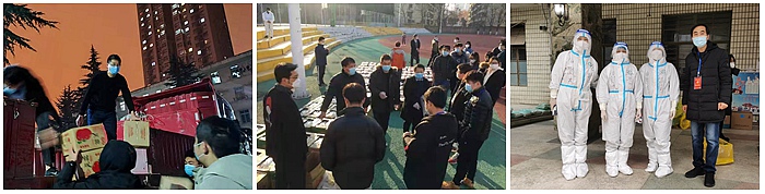 在各家属院,信息学院志愿者坚守在抗疫第一线。教师和行政人员积极投身到所在家属院疫情防控的核酸检测扫码与登记及秩序维护、生活物资与爱心菜的卸车与发放、院内防控管理等服务之中;翠华西校区一名学生心脏不适,先锋服务队三队队长、信息学院志愿者在小区封控的情况下,开私家车护送学生到医院就医,做好交接才放心回家;131号家属院封控最早,住户众多,工作量大。四队的信息学院志愿者多次身披白色战袍,为群众进行核酸检测扫码。老教授积极为改进家属院全员核酸检测数据统计献计献策。学院其他志愿者冲在生活物资卸运和发放前沿;隆冬时节天气寒冷,志愿者和家人为守护家属院的大白们送去暖贴、电暖宝和爱心热乎饭;每次65号院做核酸检测,五队副队长、信息学院志愿者只要没课,都开私家车接送医护人员和检测物资;六队副队长、信息学院志愿者在核酸检测与发放生活物资之余,组织居民集中购电。各队信息学院志愿者还在各家属院疫情防控中积极发现并堵塞安全漏洞,热心为住户解决实际困难,得到广泛称赞。