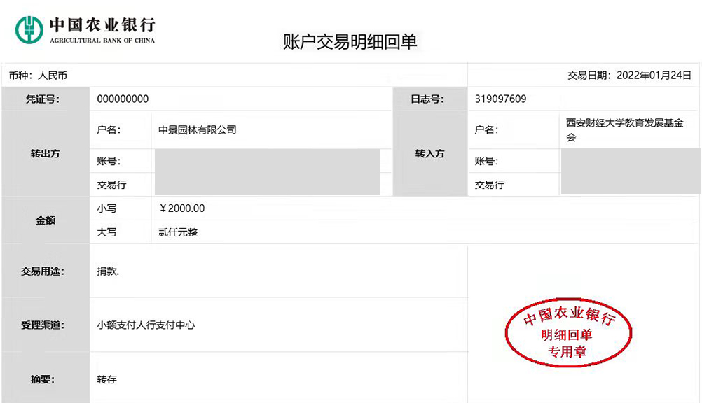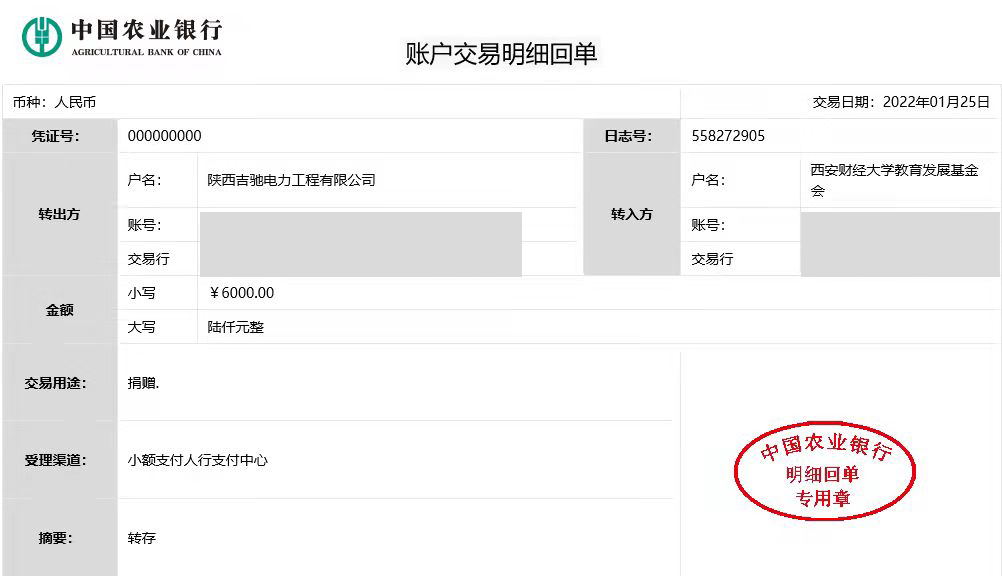 2. 西安财经大学教育发展基金会转账捐款(基建处联系捐赠)