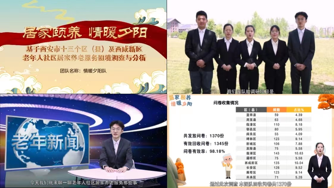 比赛中,各参赛队伍就不同选题各展其能,联系实际问题、灵活应用统计学知识和方法展开调查研究,内容新颖丰富、叙述条理清晰。在视频展示环节,各参赛队伍展示出了扎实的学术基础和出色的讲演能力。评委老师根据展示情况提问并给出进一步修改意见,为参赛选手指明改进方向。