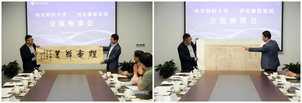 我校在西安旅游集团任职的96级校友、集团纪检监察室主任侯艳、96级校友集团法务审计部副部长于兰、84级校友、西旅股份公司董事会秘书郭养团、98级校友、西旅集团实业投资公司副总经理井磊等做了交流发言。吴旺延代表学校同毋文利董事长互赠了礼物。