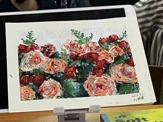 刘英俊觉得这次活动体验很好,学到了很多油画相关的知识。但可能因为照顾到第一次接触油画棒的同学,进度有一点点慢,所以刘英俊同学就一边听一边画自己想画的东西,但她认为活动氛围和整体感觉都很不错。