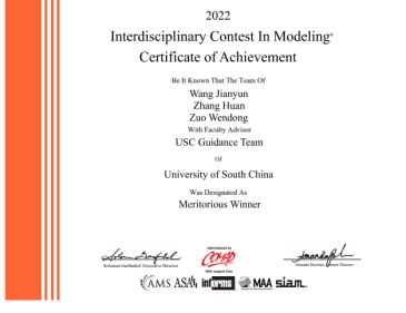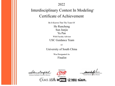 近日,2022年美国大学生数学建模竞赛(MCM/ICM)结果揭晓,南华大学共有27支参赛队伍参赛,获得特等奖提名(Finalists Winner)1项、一等奖(Meritorious Winner)1项、二等奖(Honorable Mention)5项。由何润、孙俊杰、喻盼三位同学组成的团队获得特等奖提名,由王建芸、张环、左文东三位同学组成的团队获得一等奖。此次获奖级别创新高,这是我校大学生在此项赛事中取得的历史最好成绩!