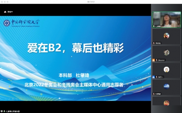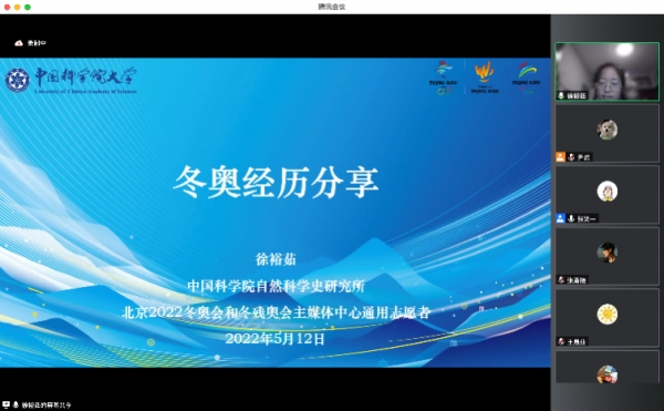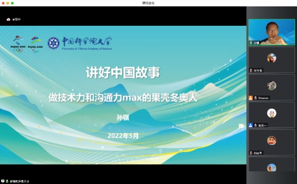为进一步学习“胸怀大局、自信开放、迎难而上、追求卓越、共创未来”的冬奥精神,引导科苑学子奋勇争先,践行“请党放心,强国有我”的青春誓言,中国科学院大学“青马工程”培训班(以下简称“青马班”)邀请中国科学院大学冬奥宣讲团成员,于5月12日举办了冬奥精神学习分享会。参加本次活动的有中国科学院大学团委书记陈睿老师,团委郑雨佳老师、高梦楠老师,冬奥宣讲团成员及青马班全体学员。