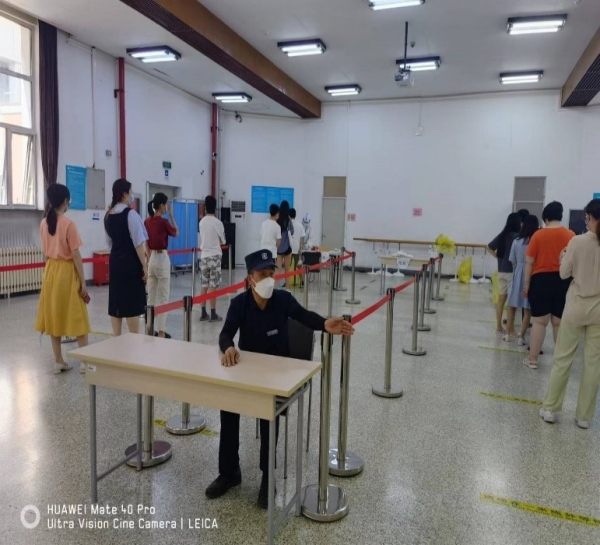 封校期间校医务室承担了校区内两千余人的核酸检测任务,物业配合进行信息采集和现场秩序维护,多轮核酸检测的背后,是一群默默奉献的“大白”在守护师生的健康。