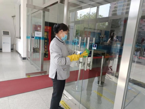 疫情防控中,消杀工作是重中之重。物业项目部按疫情防控的要求,严格落实安排消杀人员增加消杀频次,扩大消杀覆盖面确保校区公共环境安全。门把手、电梯按钮、厕所及宿舍楼道等关键部位,消杀人员结合喷壶喷洒、酒精擦拭等方式进行多频率消杀工作,保证学生健康安全。