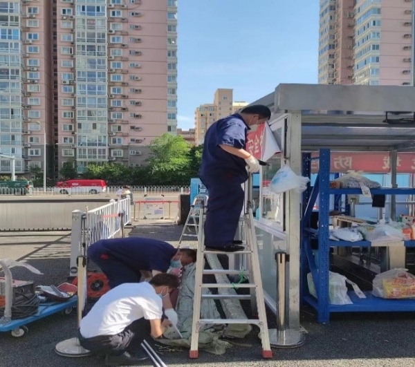 奥运村校区后勤人员严格落实《北京高校新冠疫情防控重要事项工作手册》第六版中关于快递入校、人员出入管理、物流管理、消杀管理等相关要求,精诚协作,共同守护高校这一方净土。