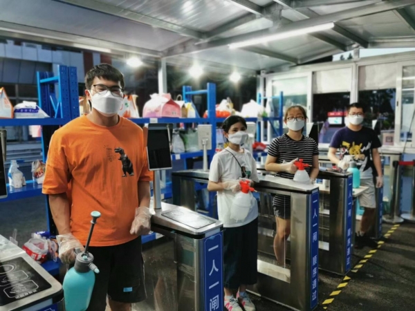 为严格落实高校关于外卖、快递的相关管理政策,真正做到杜绝“手递手”、对所有的外卖消防杀、静置后方可领取,科住物业项目部群策群力,数次调整方案,搭建临时物流消杀缓冲区,外卖员、快递员按手机尾号将外卖放置在缓冲区,由工作人员在此区域对外卖进行二次消杀,再转送到提货区,切实落实了对外卖的防疫要求,确保校区安全。