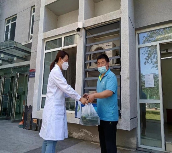 外卖员送来食品,保安、学生志愿者消杀静置后,从前架运送到后架,杜绝与外卖手接手传递。