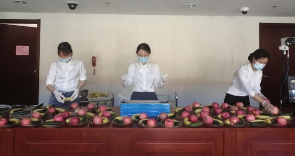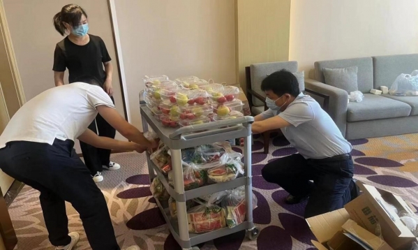 5月21日接到任务后,会议中心迅速联系居家员工,选调各部门精兵强将,组建校外监测点服务保障小组,负责与学校、酒店、防疫部门及镇政府等对接,同时为居住在监测点的师生提供入离登记、信息协调、餐食配送、协助每日核酸检测等相关工作。