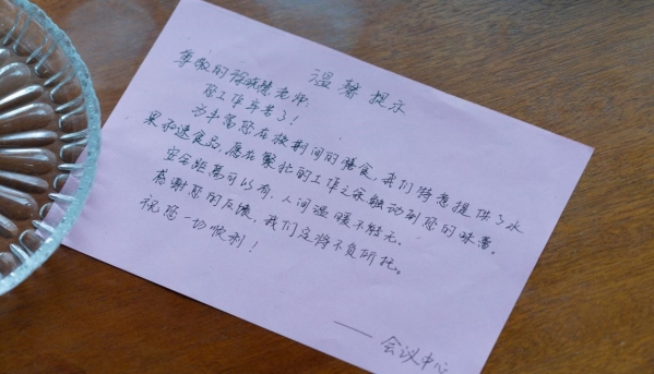 客房配备暖心手写卡片
