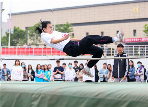 薛博在致辞中代表学校党政,向在本届运动会上取得优异成绩的单位和个人表示热烈的祝贺,向在运动会中付出辛勤汗水的全体工作人员致以衷心的感谢。他指出,本届运动会,是受新冠肺炎疫情影响,时隔两年后再次举办的运动会。两天以来,学校党政领导高度重视,相关部门积极配合协作,整个比赛组织有序、秩序井然。赛场上,裁判员公正裁决,保障人员热情服务,运动员顽强拼搏、力夺金牌,可以说赛出了风格,赛出了水平,更极大的增强了全校师生的凝聚力、向心力和自信心。同时,学校还组织了教职工趣味运动会,教职员工们积极参与,不仅取得了优异成绩,还收获了健康和快乐。他希望广大师生将本次运动会体现出的坚韧不拔、顽强拼搏、永不放弃的精神,带到今后的工作和学习当中;热爱体育事业,参与体育事业,发展体育事业,使体育教育和人才培养相互融合,相得益彰,交相辉映,共同进步,培养德智体美劳全面发展的社会主义建设者和接班人,以优异的办学成绩向建党一百周年献礼。