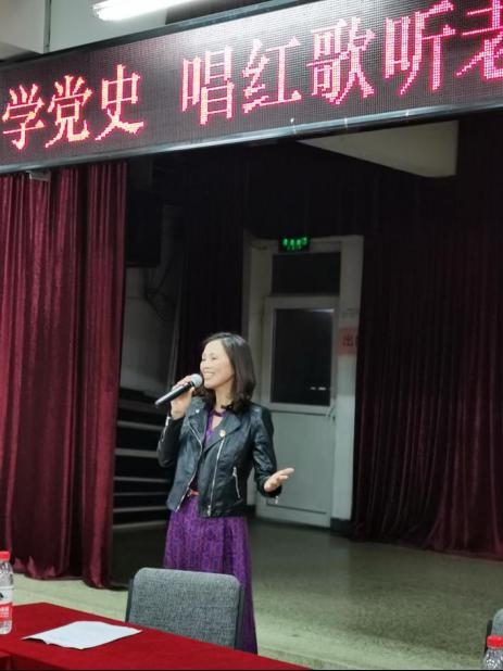 热身之后,离退休合唱团演唱了歌曲《把一切献给党》,优美的旋律,动情的演绎,唱出了对党的深情,很多同志都热泪盈眶。陈霞同志随即回顾了自己的成长经历,作为成长在改革开放年代的一名党员深刻感受到我们党带领中国人民所取得的伟大成就,她现场动情演唱了一曲《春天的故事》,并分享了词曲创作的历史背景,在场的同志无不深受感染。