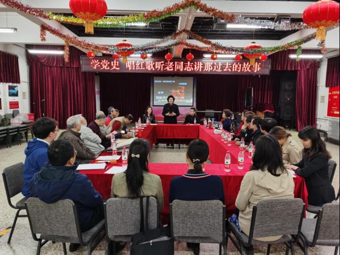 4月30日下午,学校理论学习中心组第12组成员联合北语中层干部教育培训七班全体成员和学校离退休合唱团成员一起在离退休工作处多功能厅组织了一场别开生面的党史学习教育活动,主题为“学党史 唱红歌——听老同志讲那过去的故事”。活动由12组组长艺术学院党总支书记陈霞同志主持。