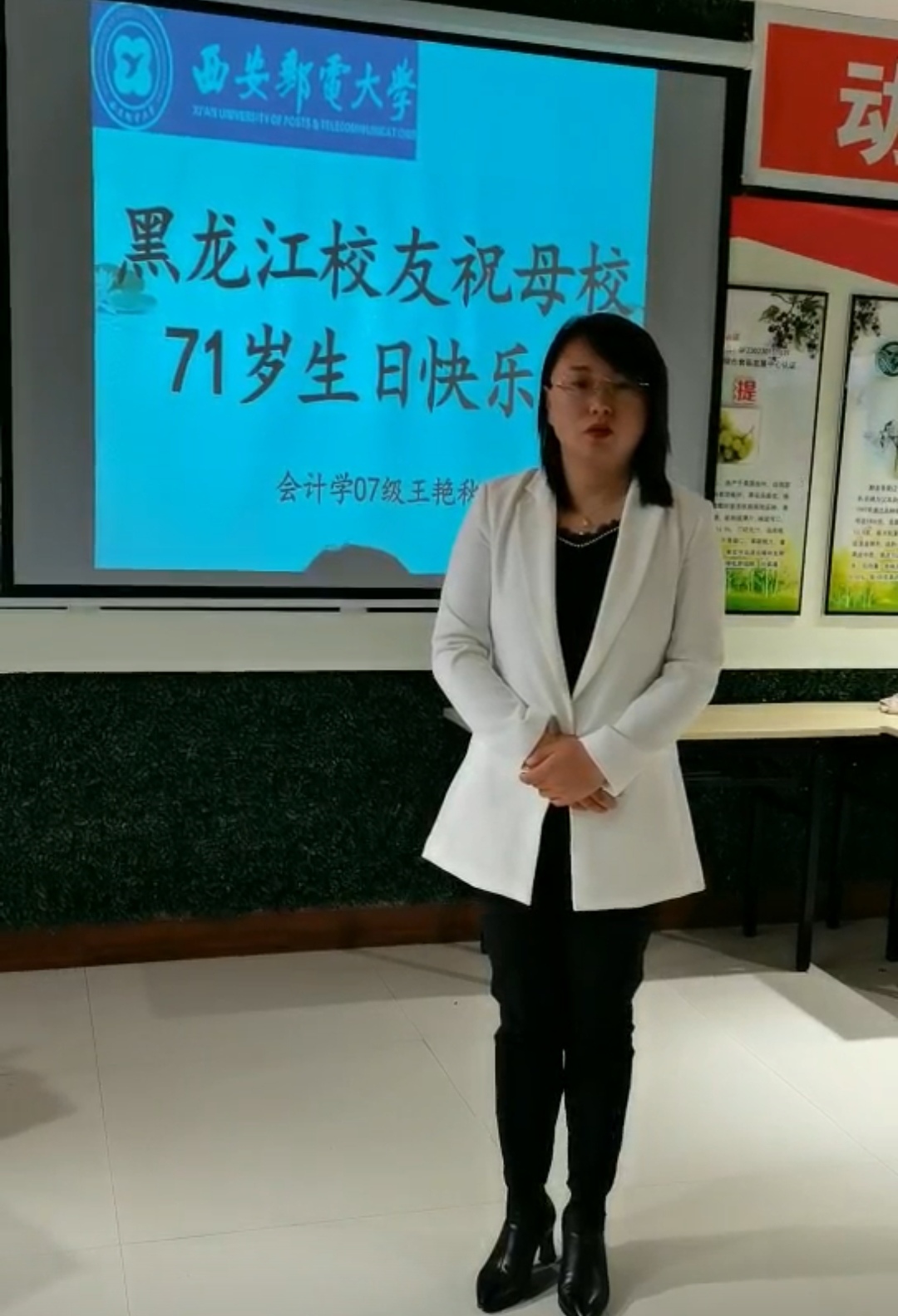 王艳秋(会计2007级,黑龙江省岗位学雷锋标兵):从1950年到2021年,从邮电人员训练班到西安邮电大学,71年风雨兼程、71年发展壮大、71年累累硕果,71年的时光里,母校时刻肩负历史使命,在不同的历史时期贡献她毕生的力量,在母校71岁生日来临之际,我送上我最真挚的祝福——祝愿母校培育时代英才,再谱华丽篇章。