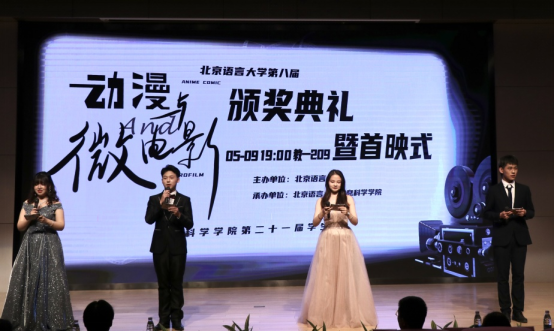 5月9日,北京语言大学第八届动漫微电影大赛颁奖典礼暨首映式在教一209举行。党委常委、副校长黄益方出席活动,学生处处长黄展,信息科学学院党总支书记李超,信息科学学院副院长罗智勇,信息科学学院党总支副书记李吉梅以及各兄弟组织代表等师生参加活动。